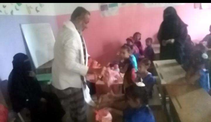 وتم في الزيارة توزيع الهدايا العينية للاطفال من قبل رئيس ادارة الشباب والطلاب في مديرية احور الاستاذ خالد بوزيد.