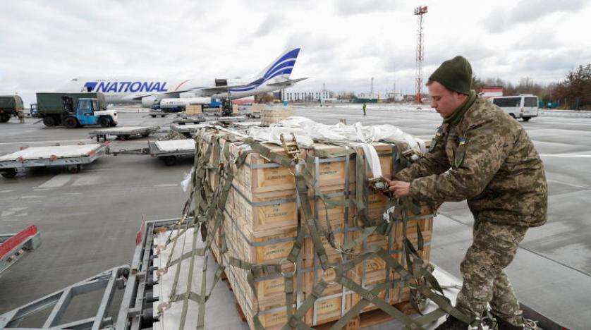 جندي أوكراني خلال تفريغ مساعدات عسكرية أميركية