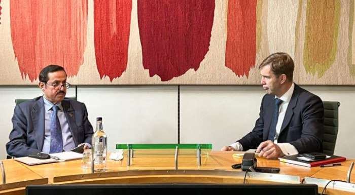 وقال خلال لقائه توبياس إلوود رئيس لجنة شؤون الدفاع في مجلس العموم البريطاني، إن جرائم المليشيات الإرهابية الحوثية من تهديد الأمن والسلم الإقليميين، في عدم امتثالها لاتفاق ستوكهولم بشأن الحديدة، واستغلالها الميناء لممارسة القرصنة، يمس أمن وسلامة حركة الملاحة البحرية في مضيق باب المندب والبحر الأحمر.