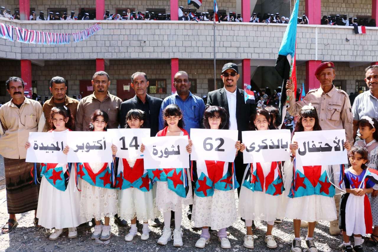 نظمت مدرسة الزهراء للبنات في ردفان بمحافظة لحج اليوم حفلاً خطابيًا وفنياً بمناسبة الذكرى الـ 62 لثورة 14 أكتوبر المجيدة التي انطلقت شرارتها من قمم جبال ردفان بقيادة الشهيد راجح بن غالب لبوزة .
