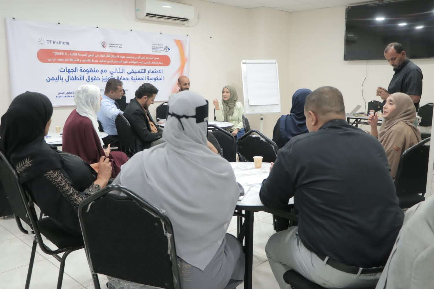 عقد التحالف اليمني لرصد انتهاكات حقوق الإنسان (تحالف رصد)، بالتعاون والشراكة مع معهد "دي تي"، الأربعاء 15 اكتوبر، اجتماعا تنسيقيا هو الثاني من نوعه مع عدد من الجهات الحكومية المعنية والتي تشكل المنظومة المعنية بحماية وتعزيز حقوق الأطفال في اليمن.