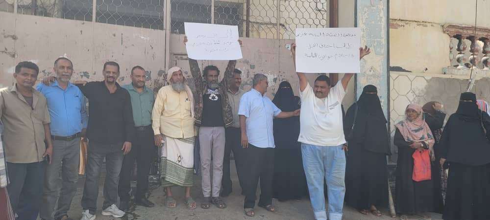 نفذ عدد من موظفي ومتعاقدي الهيئة العامة للأراضي والمساحة والتخطيط العمراني في العاصمة عدن، صباح اليوم الأحد وقفة احتجاجية أمام بوابة الفرع في المُعلا؛ للمُطالبة باسئناف نشاط الفرع وحسم الخلاف حوله من قبل رئيس الحكومة.