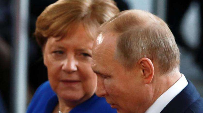 المستشارة الألمانية السابقة أنجيلا ميركل تتحدث مع الرئيس الروسي فلاديمير بوتين