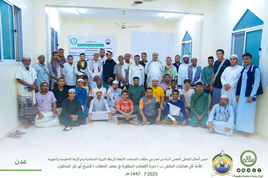 دورة "الكفايات المطلوبة في معلم الحلقات" تختتم فعاليات الملتقى العلمي السادس لمدرسي المساجد بعدن