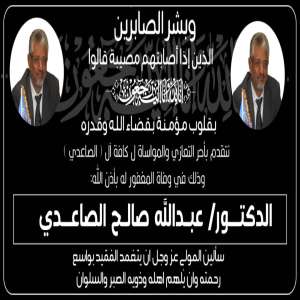 أسرة آل الصاعدي تتقدم بخالص الشكر والتقدير لجميع المعزين في وفاة فقيدهم الدكتور عبدالله صالح الصاعدي