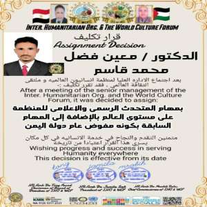 تعيين الدكتور معين فضل محمد قاسم متحدثاً رسمياً وإعلامياً للمنظمة إنسانيون العالمية