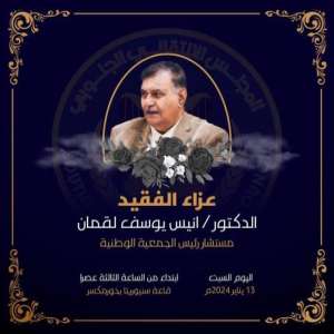 اليوم عصرا استقبال العزاء في وفاة الفقيد الدكتور أنيس لقمان