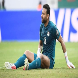لحظة إصابة حارس منتخب مصر أبو جبل بقطع في الرباط الصليبي