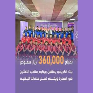 بنك الكريمي يستقبل منتخب الناشئين بالمهرة ويكرمه بمبلغ 360 ألف ريال سعودي