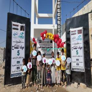 افتتاح مشروع بئر ارتوازي بمنطقة الروضة في محافظة مأرب بدعم فاعلات خير من قطر
