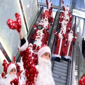 100 "بابا نويل" ينشرون الفرح في مترو موسكو