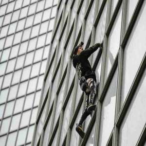 الرجل العنكبوت" يتسلق برجاً لتوجيه "رسالة سلام"