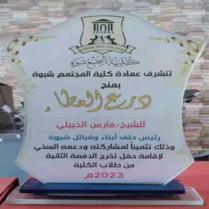 كلية المجتمع بجامعة شبوة تكرم الشيخ فارس الخبيلي بدرع العطاء