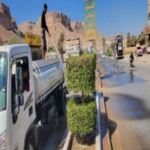 وحدة النظافة و التحسين بمديرية القطن تقوم بتقليم الأشجار و رشها و تنظيف الأرصفة بالماء