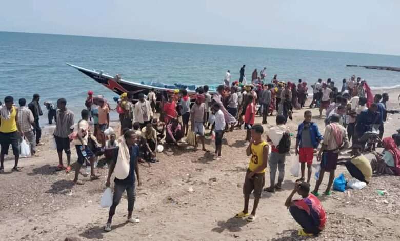 وصول ثلاث موجات من المهاجرين غير الشرعيين إلى سواحل شبوة بإجمالي 620 مهاجرًا أفريقيًا