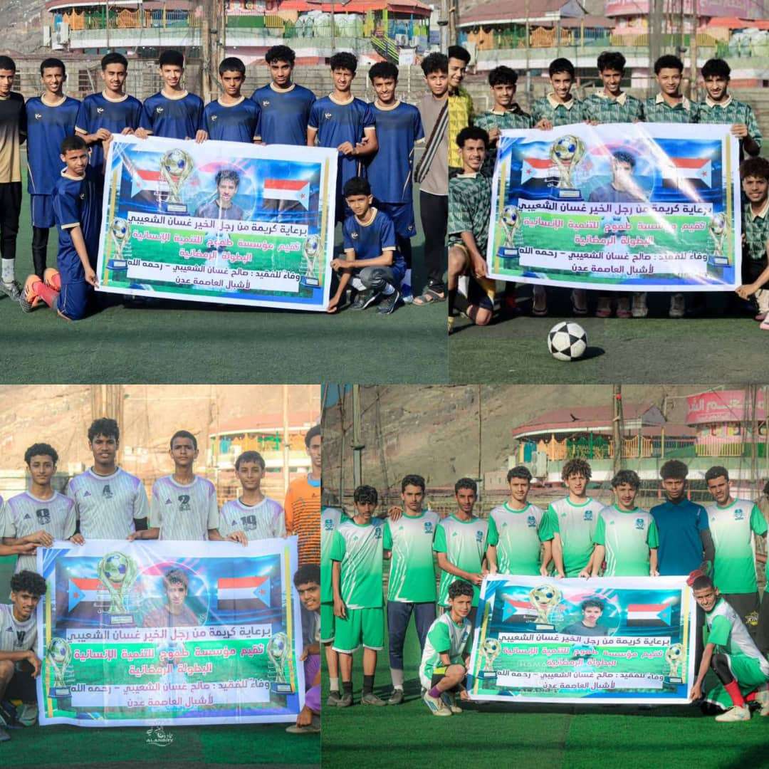 أُقيمت عصر اليوم 15 رمضان مراسم قرعة الدور نصف النهائي من البطولة الرمضانية لأشبال عدن، التي تُقام وفاءً لروح الفقيد صالح غسان الشعيبي رحمه الله، وتنظمها مؤسسة طموح للتنمية الإنسانية برعاية كريمة من رجل الخير غسان الشعيبي.