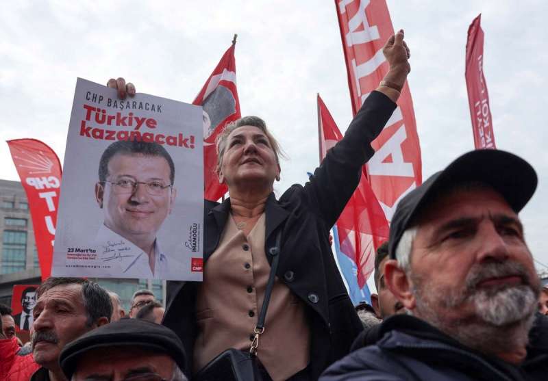 وهتف المتظاهرون "الرئيس إمام أوغلو"، و"سيأتي اليوم الذي تنقلب فيه الموازين ويُحاسب فيه حزب العدالة والتنمية"، في إشارة إلى حزب الرئيس أردوغان الحاكم.