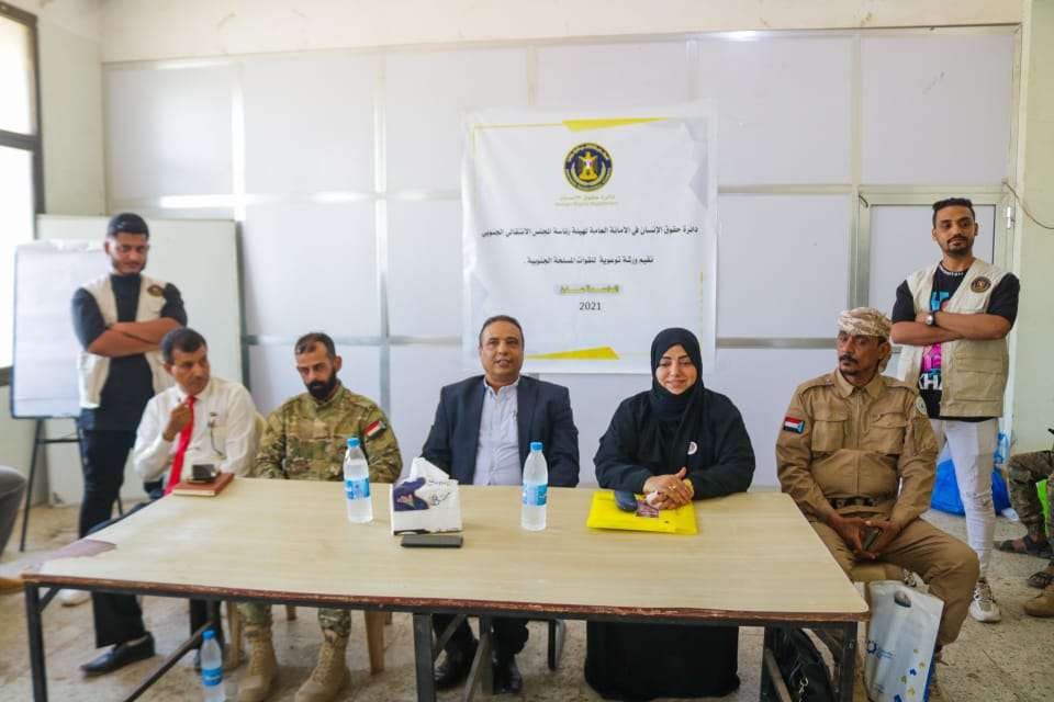 دشنت دائرة حقوق الإنسان في الأمانة العامة لهيئة رئاسة المجلس الانتقالي الجنوبي ، اليوم الأربعاء ، ورشة توعوية لأفراد ومنتسبي القطاع الثامن في قوات الحزام الأمني بالشيخ عثمان في العاصمة عدن.