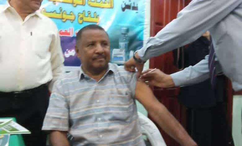دشن مدير عام مكتب الصحة العامة والسكان الدكتور خالد جابر ونائبه الدكتور عبدالحكيم ناجي صباح اليوم السبت الحملة الوطنية للتحصين ضد كوفيد19 بلقاح جونسون اند جونسون في مركز الامومة والطفولة بمديرية الحوطة في محافظة لحج .