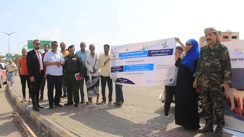 ضمن برنامج تعزيز الامن على المستوى المحلي في اليمن نفدت مؤسسة الوضاح للحوار والتنمية بالتعاون مع مركز اليمن لدراسات حقوق الانسان وبتمويل من مؤسسة رنين! اليمن اليوم الاحد 2 اكتوبر 2022 في العاصمة عدن تدشين حملة توعوية حول مخاطر انتشار المخدرات.