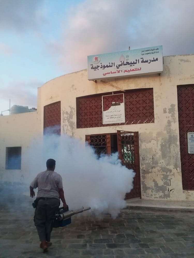 ينفذ قسم صحة البيئة بمديرية صيرة بالعاصمة عدن حملة رش ضبابي لمكافحة الحشرات الناقلة للأمراض والأوبئة في المدارس والثانويات ورياض الأطفال والحدائق العامة