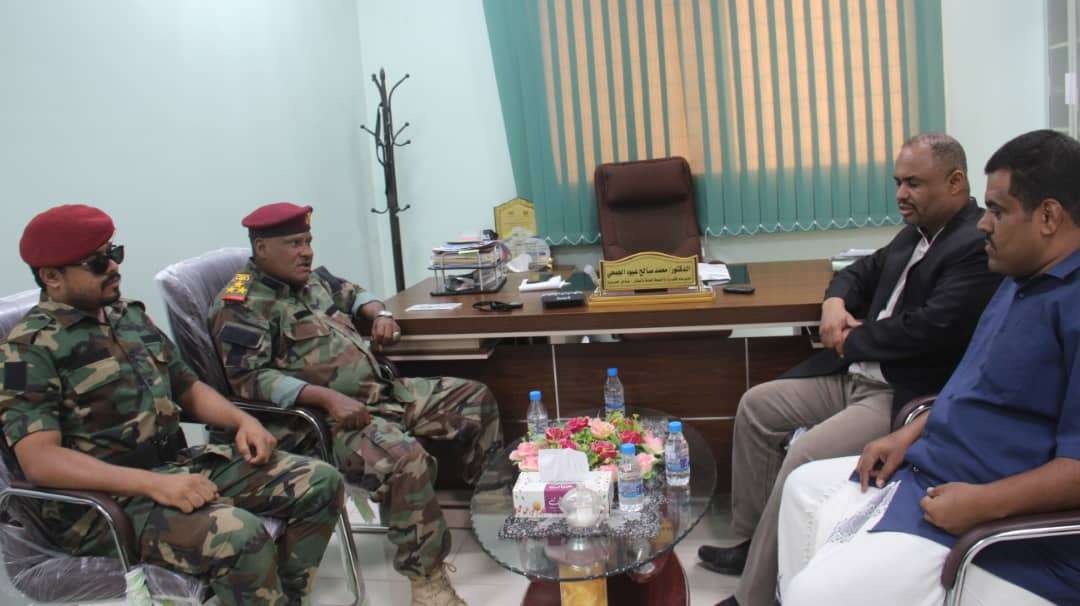 وجاء ذلك خلال لقاء الدكتور محمد صالح الجمحي المدير العام لمكتب وزارة الصحة العامة والسكان بحضرموت الساحل بمكتبه العميد ركن خالد أحمد التميمي قائد لواء الريان وتسليمه درع تذكاري .