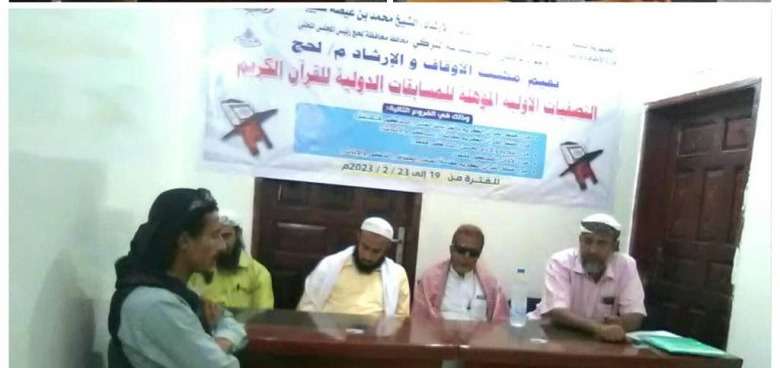 اُختتم صباح اليوم الخميس بمكتب الأوقاف والإرشاد محافظة لحج التصفيات الأولية للمسابقات الدولية للقرآن الكريم برعاية معالي وزير الأوقاف والإرشاد الشيخ محمد بن عيضة شبيبة واللواء الركن / أحمد عبدالله التركي محافظ محافظة لحج رئيس المجلس المحلي ، والتي استمرت للفتره من 19-23 فبراير 2023 م