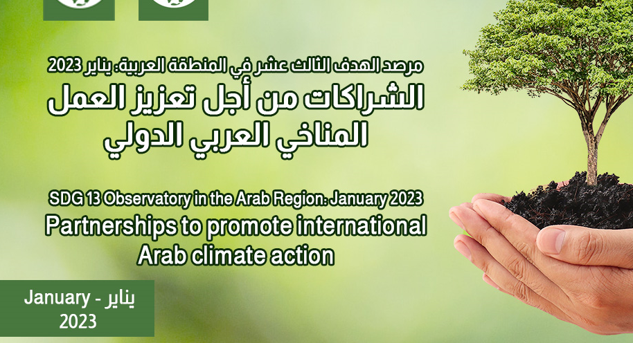 خلال شهر يناير الماضي عقدت العديد من الدول العربية عشرات الشراكات من أجل العمل المناخي، والذي يجمع بذلك ما بين تحقيق الهدف 13 المعني بالعمل المناخي والهدف 17 المعني بالشراكات من أجل تحقيق الأهداف. هذا ما رصدته مؤسسة ماعت للسلام والتنمية وحقوق الإنسان في عددها الثالث عشر من "مرصد الهدف الثالث عشر في المنطقة العربية - يناير 2023 والذي يأتي هذا الشهر تحت عنوان" الشراكات من أجل تعزيز العمل المناخي العربي الدولي "، وذلك لتحليل الإنجازات البارزة في تحقيق غايات الهدف الثالث عشر في المنطقة العربية على مدار الشهر الماضي.