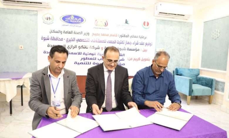 توقيع على عقد شراء جهاز تفتيت الحصى للمستشفى التخصصي الخيري بشبوة