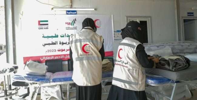 يستمر الهلال الأحمر الإماراتي بتقديم الدعم الإنساني والطبي بتوفير معدات ومستلزمات طبية في عدة مناطق محررة وآخرها في المكلا عاصمة محافظة حضرموت شرقي اليمن .