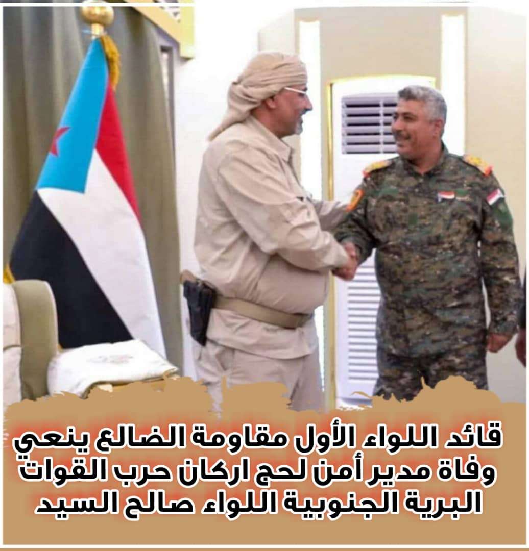 قائد اللواء الأول مقاومة الضالع ينعي وفاة مدير أمن لحج اركان حرب القوات البرية الجنوبية اللواء صالح السيد