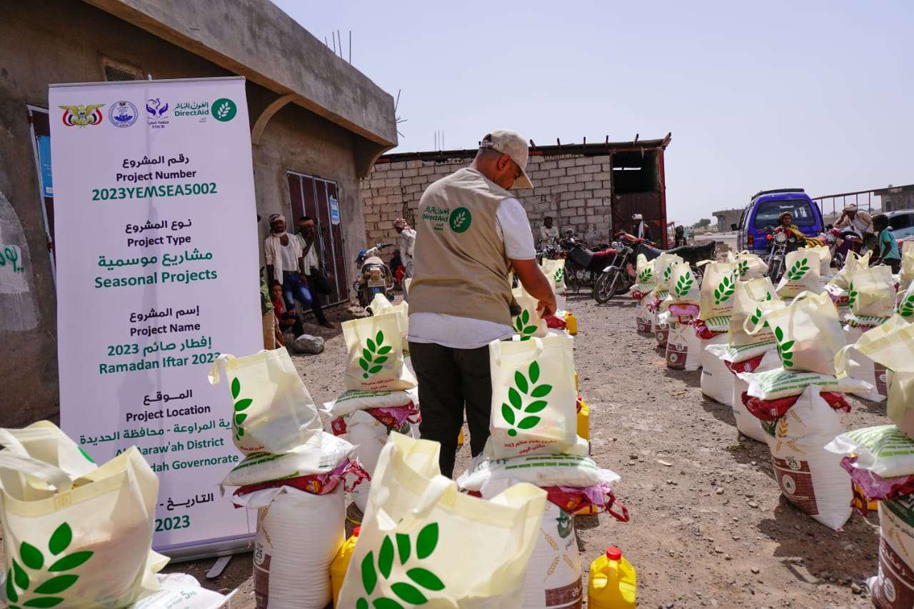 نفذت العون المباشر مكتب اليمن بالشراكة مع منظمة شكراً للإبداع والتنمية، مشروع إفطار صائم 2023، بتوزيع (1127) سلة غذائية استفاد منها (8,204) أشخاص في أمانة العاصمة صنعاء ومحافظة الحديدة بتمويل العون المباشر.