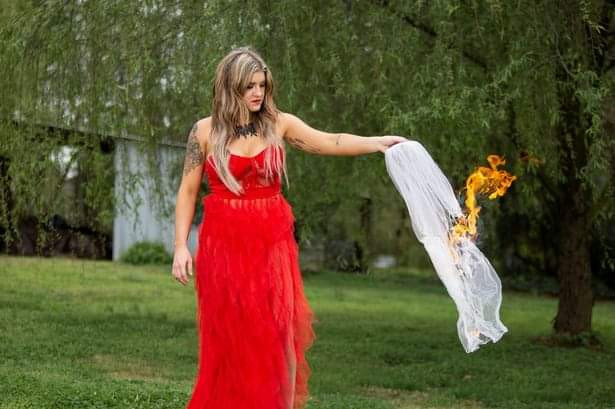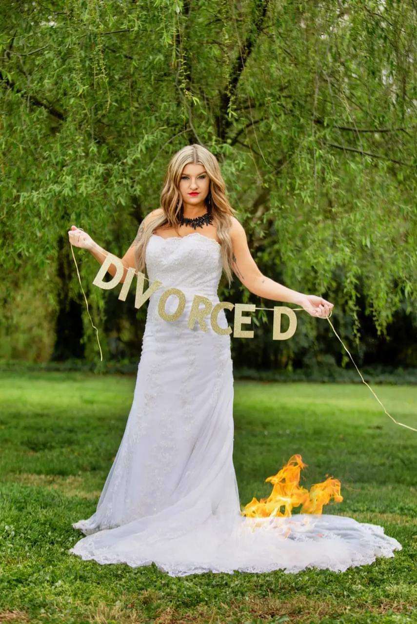 أمريكية تنظم حفل طلاق بجلسة تصوير وإشعال النار فى فستان الزفاف