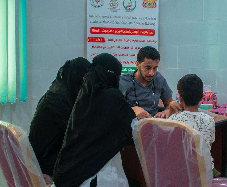 و فيما عاين استشاريون في أمراض الدم والأورام من المملكة العربية السعودية واليمن المرضى من الأطفال أمس الأحد، تتواصل صباح اليوم الإثنين عملية استقبال حالات أورام سرطان الأطفال ومعاينتهم من الاستشاريين المشاركين في المؤتمر حتى يتاح لأكبر عدد من المرضى الأطفال الاستفادة من الخدمات التي سيقدمها المخيم الذي يستمر لعدة أيام برعاية كريمة من وزير الصحة العامة والسكان أ. د. قاسم محمد بحيبح ومحافظ محافظة حضرموت الأستاذ مبخوت مبارك بن ماضي.