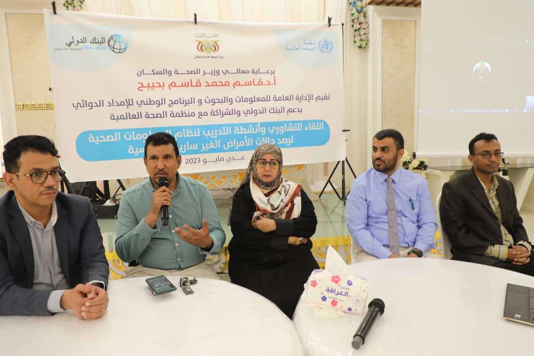 اللقاء الذي انطلق اليوم يشارك فيه 32 مشاركا هم مدراء التموين الطبي بالمحافظات المحررة سيناقشون على مدى أربعة أيام عدد من الموضوعات بما فيها الوضع الراهن للنظام الوطني للمعلومات الصحية والخطوات العملية له مع اضافة جزئية الترصد للأمراض المزمنة والنفسية وأهمية نظام الترصد الوطني في تحديد حجم المشكلة والمؤشرات المطلوبة لتقييم تدخلات الوقاية والسيطرة على الأمراض المزمنة والنفسية وعرض النظام الالكتروني الوطني للأمراض المزمنة والنفسية وأهمية اختيار الإمداد الدوائي كنقطة اتصال للترصد، بالإضافة إلى استخدام نظام الترصد لتحسين اتخاذ القرار في إدارة مكافحة الأمراض
