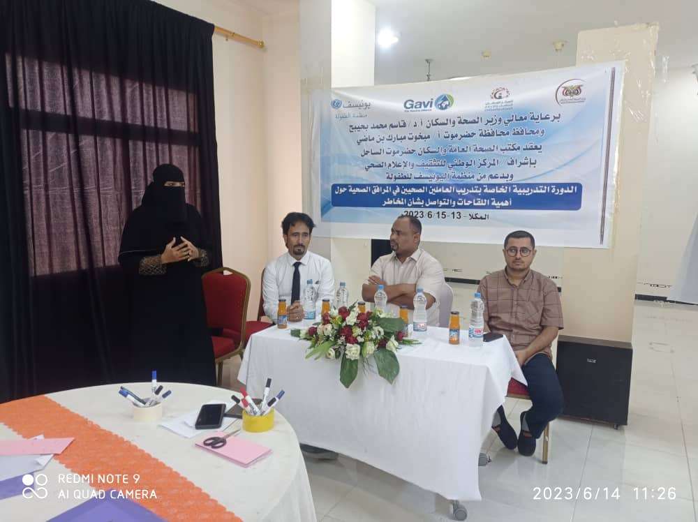 تدشين الدورة التدريبية حول أهمية اللقاحات والتواصل بشأن المخاطر بالمكلا