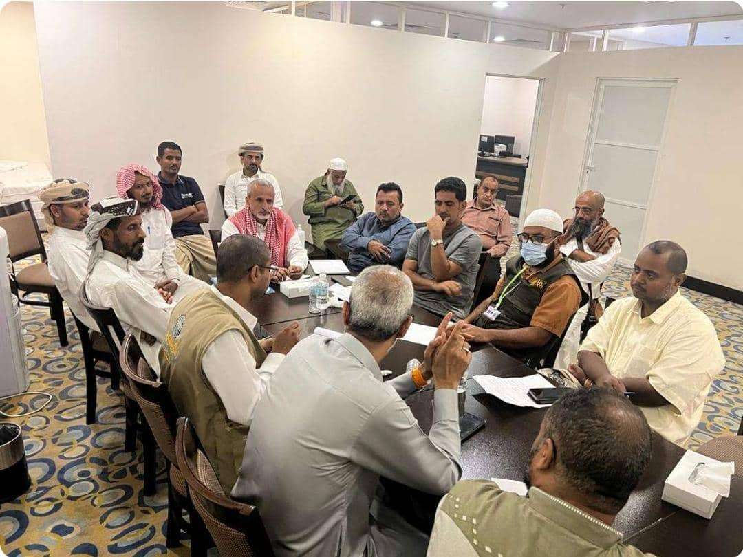 بمتابعة حثيثة ويومية من معالي وزير الصحة العامة والسكان ا د قاسم محمد بحيبح لسير اعمال البعثة الطبية اولا بأول عقدت البعثة الطبية العليا برئاسة د سالم الشبحي رئيس الصحة والبيئة بالجمعية الوطنية بالانتقالي الجنوبي وكيل وزارة الصحة العامة والسكان رئيس البعثة الطبية في مكة المكرمة اجتماع مشترك مع وكيل قطاع الحج والعمره بوزارة الأوقاف تم خلاله مناقشة الاستعدادات اللازمة لخدمة ضيوف الرحمن والصعاب التي تعترض البعثة الطبية