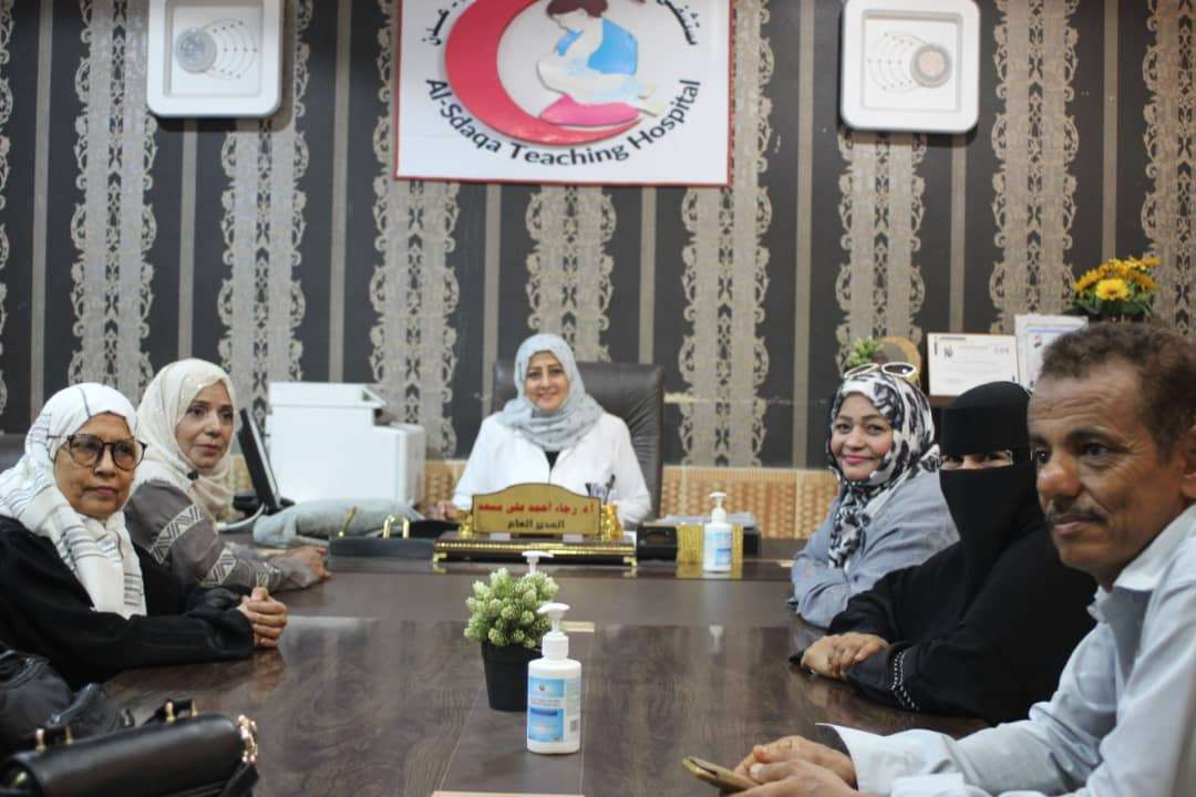 مدير عام مستشفى الصداقة تستقبل وفد اتحاد الجمعيات والمؤسسات الاجتماعية الخيرية بعدن
