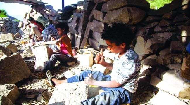 ظروف عمل شاقة، يواجهها الأطفال، ينحتون الصخر، ليستخرجوا قوتهم، بعد أن تركوا تعليمهم، في ظل تدهور الحالة المادية لأسرهم بسبب الحرب، يعملون طوال فترة النهار في أعمال شاقة، يعجز عنها الكثير من الكبار، ليحصلوا على مقابل زهيد، لا يتجاوز دولارين في اليوم الواحد.