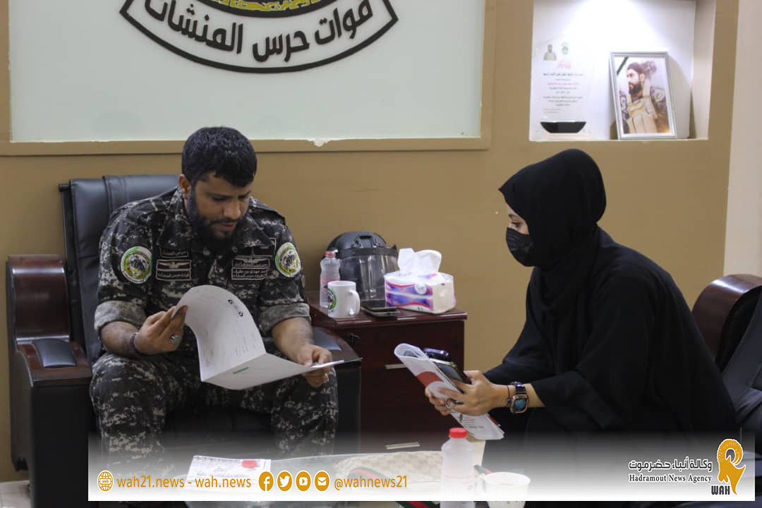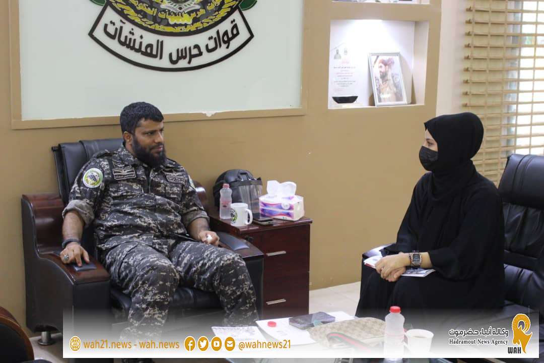 التقى العميد أحمد مهدي بن عفيف قائد قوات حرس المنشآت الحكومية اليوم مدير الدائرة الصحية في الحزام الأمني الاخت سامرين عدنان السبوع.