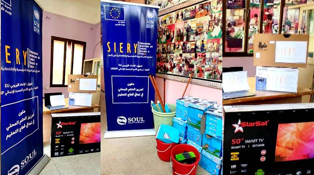 دشنت منظمة سول للتنمية توزيع التجهيزات المكتبية لعدد من مكاتب التربية والتعليم في محافظتي عدن ولحج، ضمن مشروع تعزيز المرونة المؤسسية والاقتصادية ومكون تعزيز الحكم المحلي في تعافي قطاع التعليم الممولة من الاتحاد الاوروبي وبالشراكة مع وزارة الادارة المحلية ووزارة التربية والتعليم.