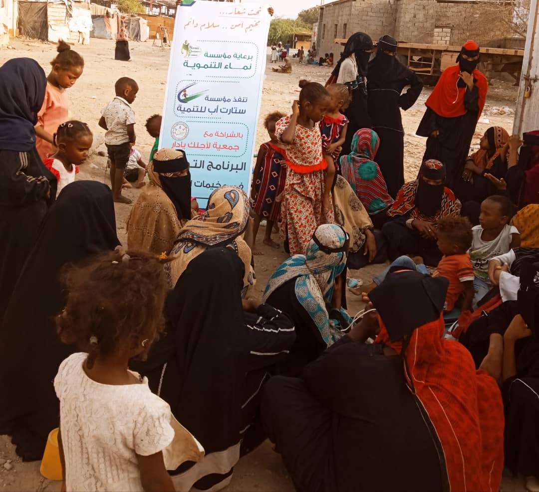 مؤسسة ستارت أب للتنمية تنفذ برنامجها التوعوي في مخيمات النازحين بعدن