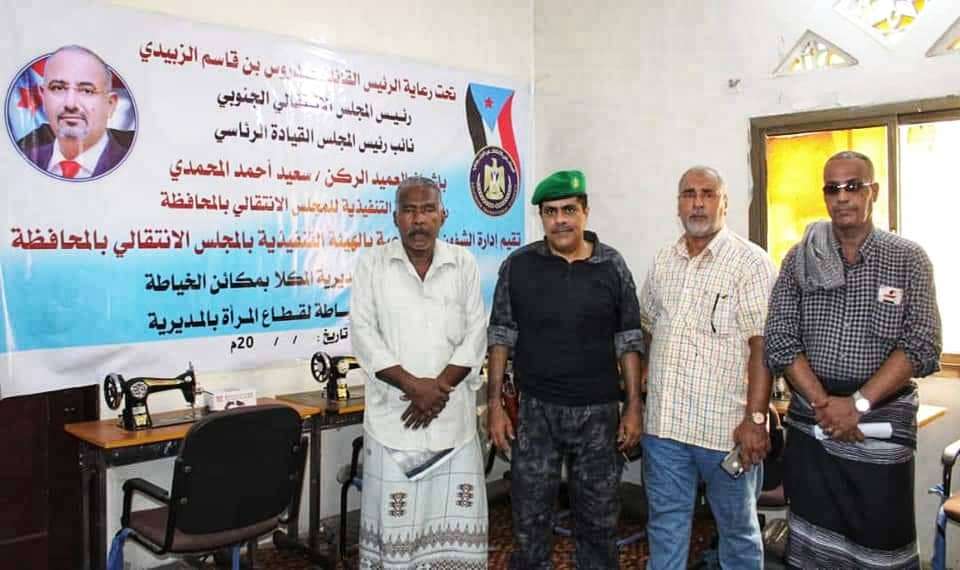 المحمدي يسلم انتقالي المكلا معدات لافتتاح مشغل للخياطة والتطريز