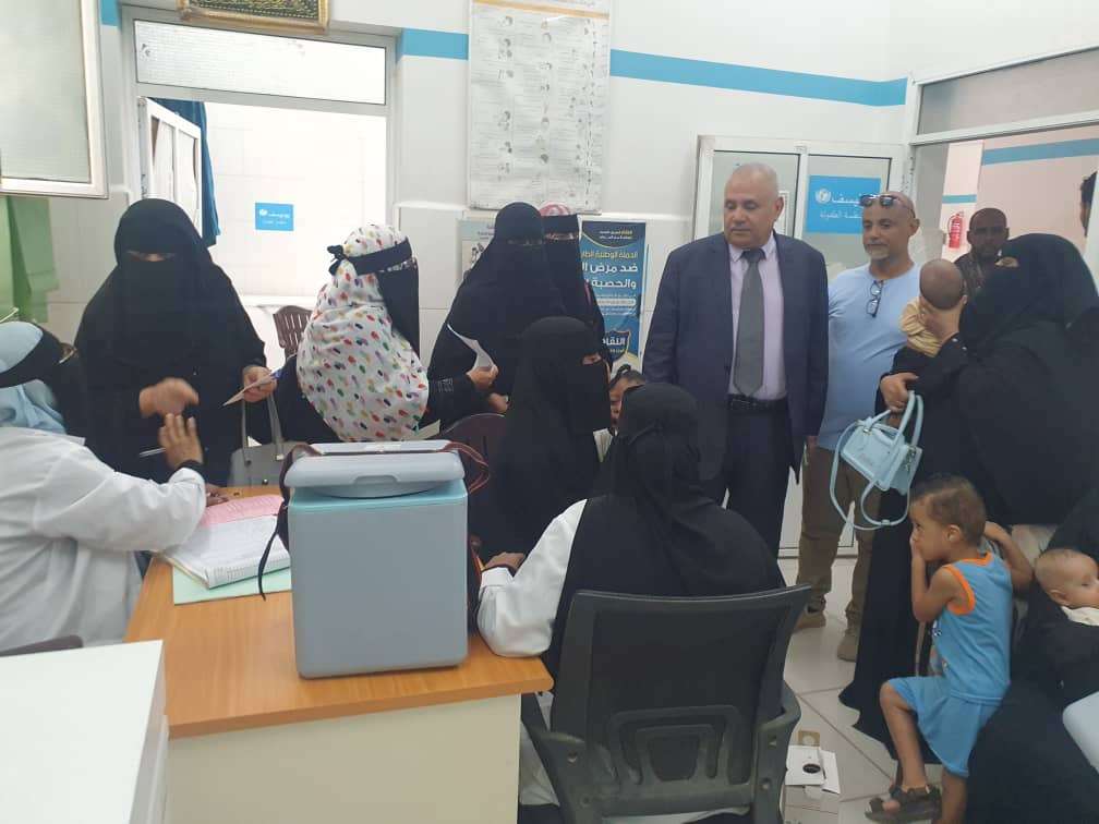 وخلال الزيارة التفقدية التي رافقه فيها مدير مكتب الصحة بمديرية المعلا د.بسام عبادي و مدير مكتب الصحة بمديرية التواهي د.خالد عبدالباقي، أطلع البيشي على سير عمل حملة التحصين ضد مرض الحصبة ، لفرق التحصين والتثقيف الصحي في مديرية المعلا ومديرية التواهي ، وتحرك العاملين الصحيين المشاركين بالحملة، لإيصال خدمة التحصين واعطاء جرعات اللقاح المضاد لمرضي الحصبة والحصبة الألمانية، ومعرفة مدى اقبال المواطنين لعملية التحصين لأطفالهم في المديرية.