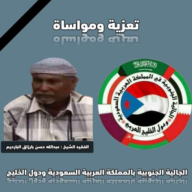 الجالية الجنوبية بالمملكة والخليج تعزي في وفاة المناضل الجنوبي الشيخ عبدالله حسن بارزاق البارحيم