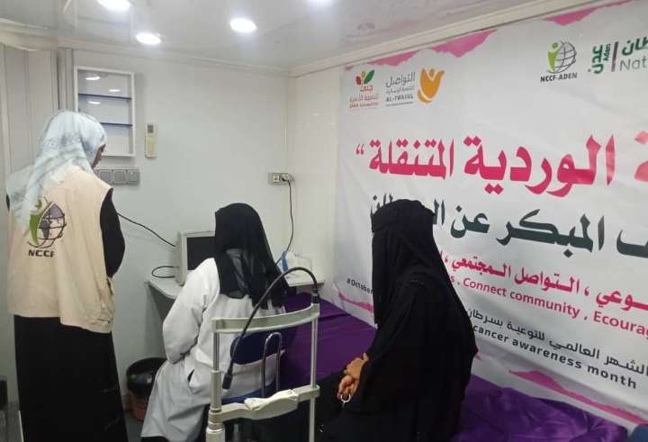 نفذت المؤسسة الوطنية لمكافحة السرطان بعدن، بالمجمع الصحي بمديرية التواهي، اليوم، مشروع العربة الوردية المتنقلة للكشف المبكر عن سرطان الثدي،بالتعاون مع مؤسسة جنى لتنمية الأسرة، ودعم من مؤسسة التواصل للتنمية الانسانية.