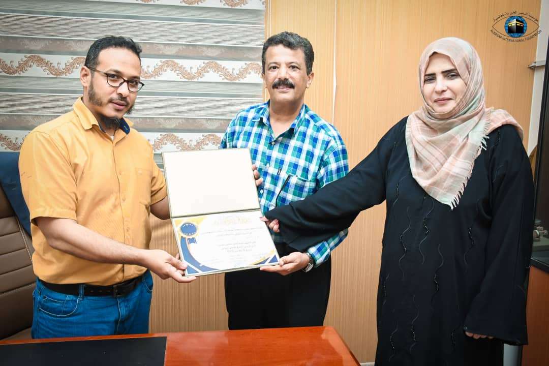 كرم  الدكتور / خالد عبدالباقي فارع، مدير مكتب الصحة والسكان في مديرية التواهي  وبمعية الدكتورة/ ريم توفيق سعيد، مديرة المجمع الصحي في المديرية، صباح اليوم، مستشفى مكه التخصصي للعيون، في مبنى المستشفى بالعاصمة عدن.