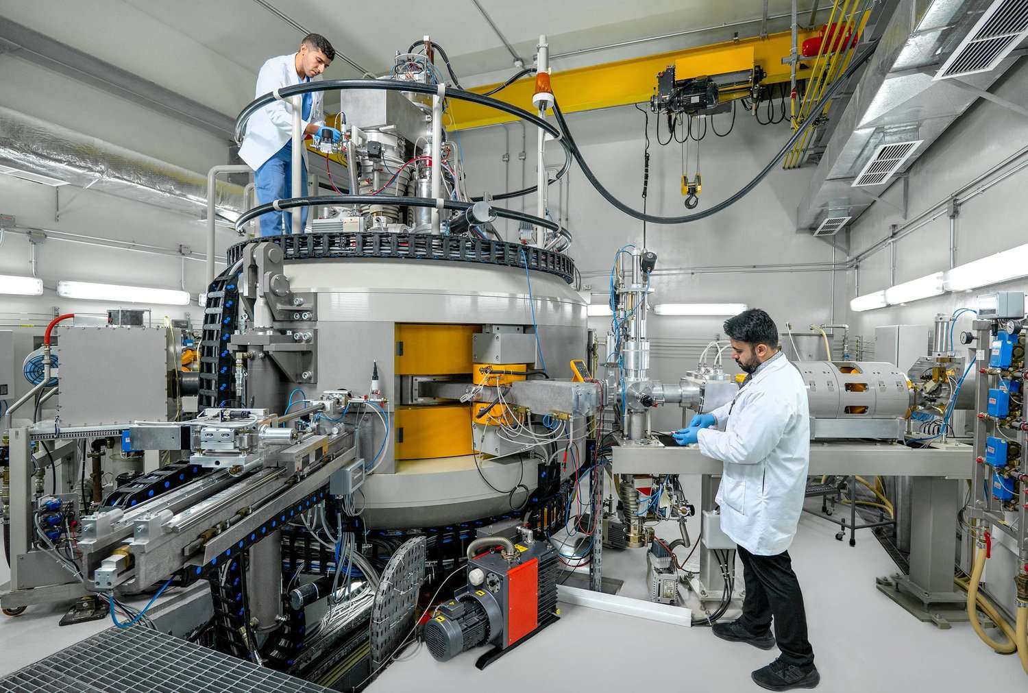 منذ أربعة عقود انطلق قسم السايكلترون والمستحضرات الصيدلانية المشعة بمستشفى الملك فيصل التخصصي ومركز الأبحاث بتلبية احتياجات المراكز الطبية المحلية والإقليمية من المستحضرات المشعة المستخدمة في التشخيص والعلاج لعدد من الأمراض التخصصية الدقيقة؛ إذ أنتج القسم منذ تأسيسه أكثر من 25 نوعاً من المستحضرات المشعة بقدرة إنتاجية تجاوزت 600 ألف مستحضر مشع. وما زال القسم يواصل تقديم منتجاته لأكثر من 50 مركزاً سعودياً متخصصاً في الطب النووي، متطلعاً لتحقيق الاكتفاء الذاتي من هذه المستحضرات في المملكة العربية السعودية.