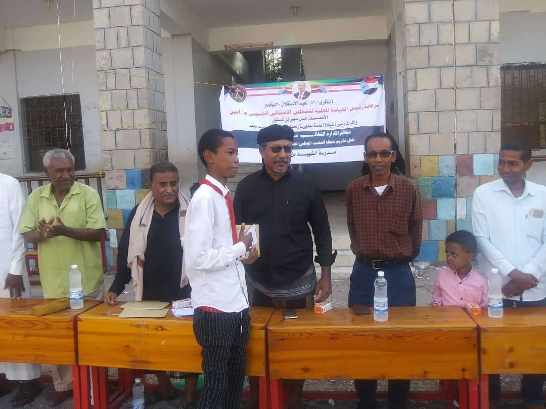 ثقافية انتقالي تنظم حفلا تكريما لحفظة النشيد الوطني الجنوبي في مدرسة الشهيد بن نعم
