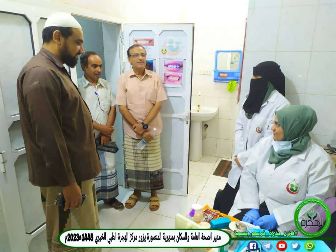 قام مدير مكتب الصحة بمديرية المنصورة بعدن الدكتور عبدالحكيم المفلحي بمعية الشيخ قائد المفلحي رئيس حي ابو اليمامة بالمنصورة بزيارة ميدانية تفقدية لمركز الهجرة الصحي الخيري التابع لمؤسسة الهجرة الخيرية للتنمية بمديرية المنصورة بالعاصمة عدن ، للإطلاع على سير عمل المركز ، وما يقدمة من خدمات صحية للمواطنين بالمديرية .